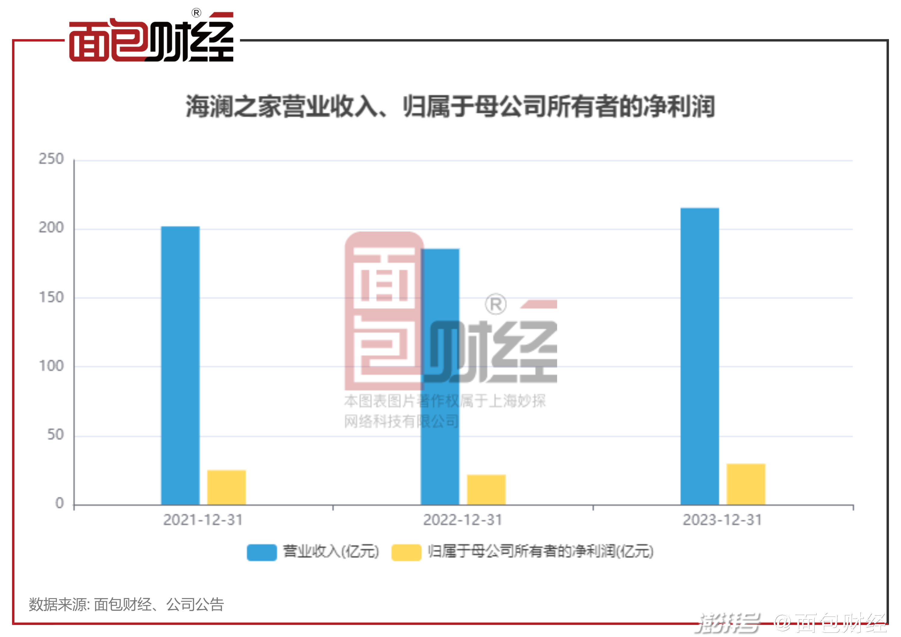 2023年,海瀾之家實現營收215.28億元,同比增長15.98%;實現歸母凈利潤29.52億元,同比增長36.96%。