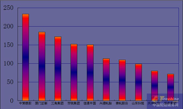 中策橡膠排行第一,盛泰集團排行第十,而賽輪股份第一次進入前十;雙星淡出。