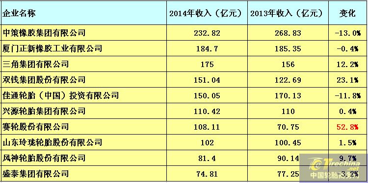 中國輪胎企業風起云涌,花開花落隨著2014年雖然已經落下帷幕,我們回頭看看中國輪胎企業的脊梁們過往的一年中收入幾何,數字是指運營收入并不是利潤。